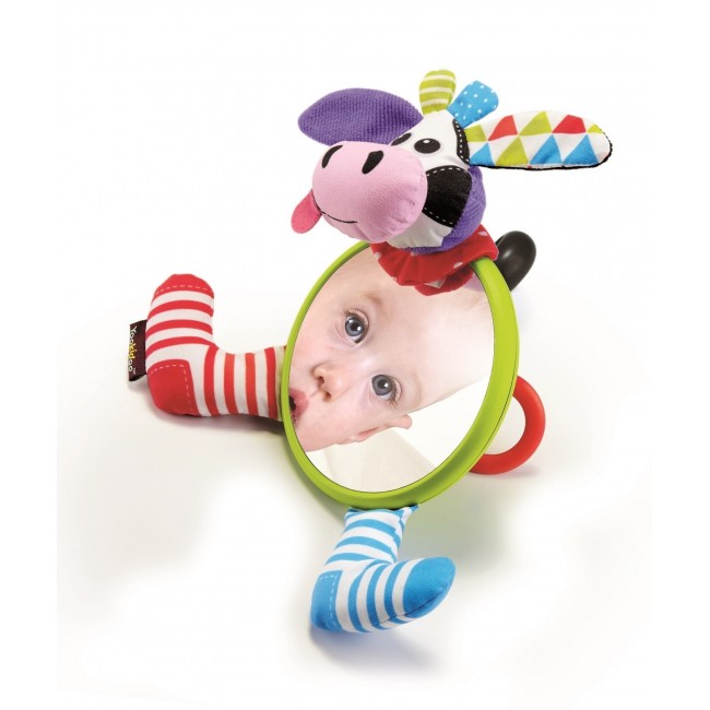 Ein liebenswerter knisternder Freund mit unterschiedlichen Texturen, einem Beißring und einem versteckten Ball für überraschende Rassel-Effekte.Steht aufrecht auf dem Boden - großartig für die Bauchlage! Großer Clip zur einfachen Befestigung an einem Gitterbett oder im Buggy. Ab Geburt.