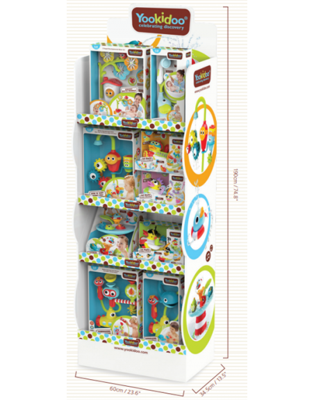 Das Yookidoo Display für Wasser-Spielzeuge ist mit foldenden Menden bestückt: