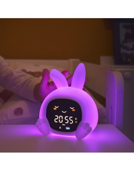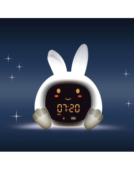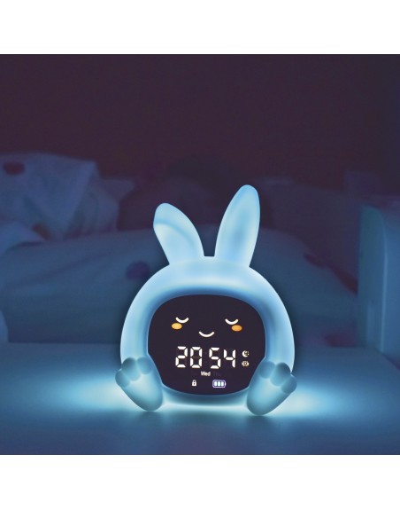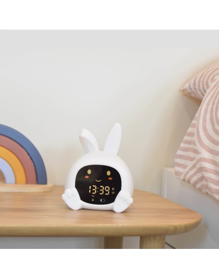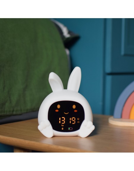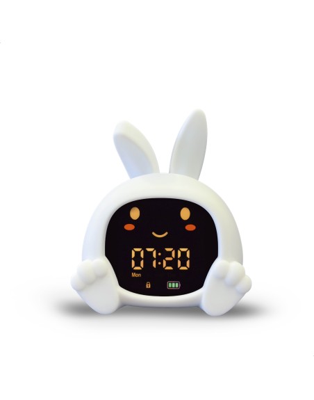 Der farbcodierte Sleeptrainer unterstützt kinderleicht bei der Entwicklung fester Schlafroutinen und zeigt deinem Kind auf intuitive Weise, wann Schlafenszeit ist, wann es sich noch etwas gedulden soll und wann es aufstehen darf. Leuchtet das Licht rot, ist es Zeit zu schlafen, bei Orange heißt es noch warten und Grün signalisiert den Start in den Tag. Zusätzlich öffnen und schließen sich die Augen automatisch zu den eingestellten Zeiten – eine spielerische und leicht verständliche Orientierung, selbst für kleine Kinder.